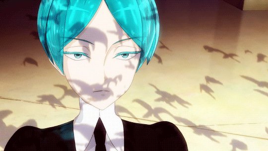 Phos is wracked with guilt, but realizes that hopefully, they can at least protect the other gems now with these new, but heavy, arms. With the loss of their previous arms, Phos lost some of their naivete and carefree attitude, and history with other gems. They suffer from sleep loss, always seeing Antarcticite’s face in their dreams and always feeling like they could have done more or done it sooner. Phos doubles down on their own introspection and notices several things that don’t add up regarding Kongo, the leader and caretaker of all the gems. There are secrets he is not telling. Secrets about their origin, their system, and who the Lunarians really are. Cinnabar and the other gems all are aware of it, of course, but have an unspoken agreement to not bring it up or say anything and just follow Kongo Sensei anyway.